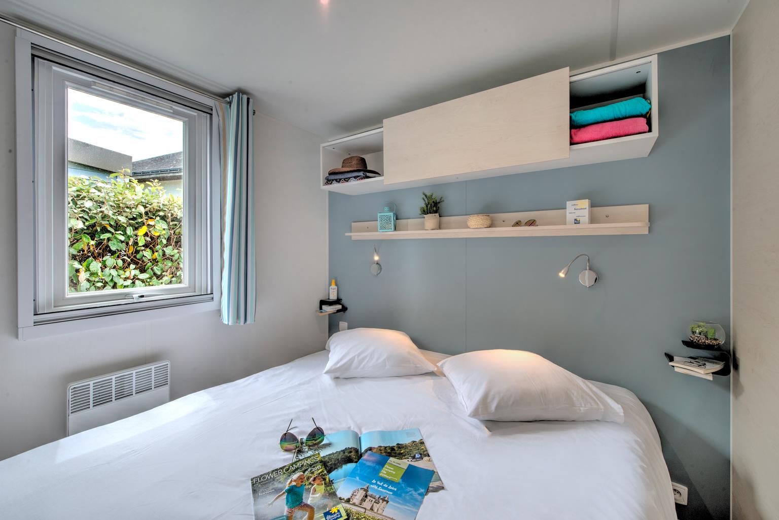Ontdek onze ultramoderne stacaravan van 35 m², ideaal voor 6 personen. Uitgerust met omkeerbare airconditioning, zorgt hij voor optimaal comfort. De drie slaapkamers zijn voorzien van verduisteringsgordijnen voor een goede nachtrust (een met een tweepersoonsbed van 160×200 cm en vier eenpersoonsbedden van 80×190 cm).